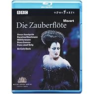 The smaller roles are done well, too. Ailish Tynan has a romp as Papagena; the evil Monostatos is done to vocal and acting perfection by Adrian Thompson, the Queen’s Three Ladies are well-matched and appropriately edgy, and the Temple Priests are convincingly sung and acted. This production of Die Zauberflöte is a dark one. Producer David McVicar and conductor Davis reject the relatively recent transformation of the opera into a Disney-like romp for kids. The comic element in the opera is there, but its philosophical underpinnings--humanity’s fitful progress to a higher plane – are paramount. There are still plenty of laughs with the fake dragon that pursues Tamino at the opera’s opening and Papageno’s funny business with a bird, among other chuckle-inducing scenes. But the production’s Stygian backgrounds make for an oppressive setting. When light enters, as in the pomp of Sarastro’s entry or the blazing yellow disc of the sun that conquers darkness, the opera’s meanings are crystal-clear. Most of the characters wear 18th Century outfits, to comic effect as Monostatos’ heavy makeup, lipsticked mouth, and elaborate wig. But there are occasional incongruities: Tamino’s smock, the Three Boys’ knit sweaters and short pants, and Papagana’s mangy fur coat, among others. They’re well intregrated into the staging so they don’t jar. Nor, aside from the occasional too-tight closeups, does the video direction. In the special features, Davis speaks of the opera’s tension between "lighthearted music and the seriousness of the story," and all elements of this production fuse those key aspects in a way that makes this Blu-ray disc a joy to hear and watch. --Dan Davis